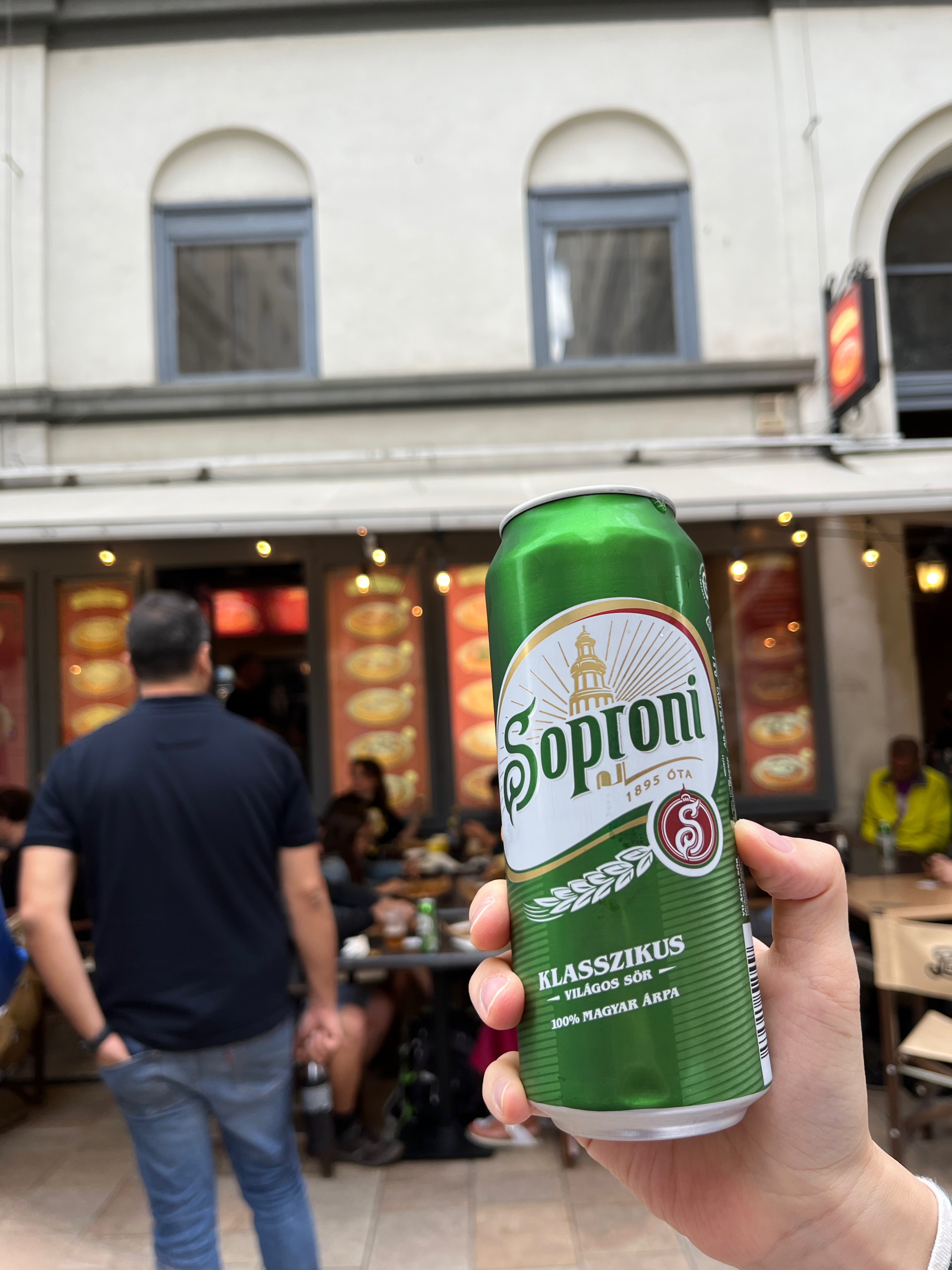 미트러버 랑고스와 어니언 랑고스를 시키고 나는 맥주를 다급히 시켰다. 임신기간 10개월 + 모유수유 1년가량 하는 동안 간단한 맥주 한잔 맘 편히 먹어보지 못한 나는 여행동안 맥주를 열심히 찾아 마셨다. 우리나라 카스 같은 느낌으로 이곳 국민 맥주인 소프로니 (SOPRONI)를 마셨는데 피곤 + 목마른 나에게 사막의 오아시스.... 같은 느낌이었다.