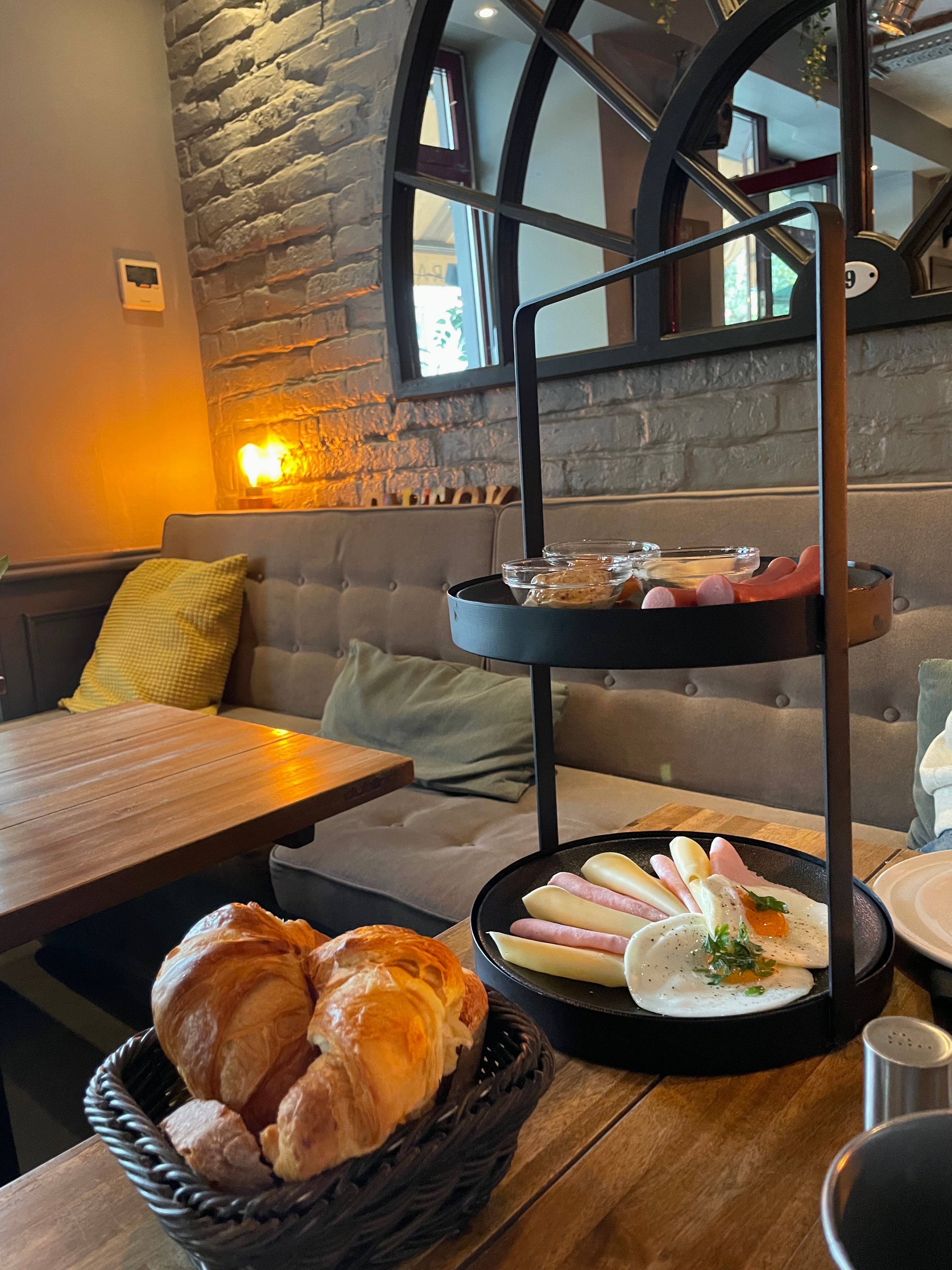 배도 고픈 상태니 근처 식당을 찾기 위해 지도를 켰더니 마침 우리가 가기로 했던 겔레르트 온천 근처였던 것이다. 안 그래도 아기 입장이 가능한지 문의하러 들르려고 했는데 잘됐다 싶어서 더더욱 그 근처에서 밥을 먹기로 했다. 거의 오픈시간대라 사람도 많이 없어 여유 있게 식사를 할 수 있었다. 우리가 생각한 든든한 식사는 아니었지만 분위기 내며 먹기에 괜찮은 아침이었다. 더듬더듬 헝가리어로 주문을 하고 추석당일이라 가족들이 모여있다고 해서 영상통화도 했다.