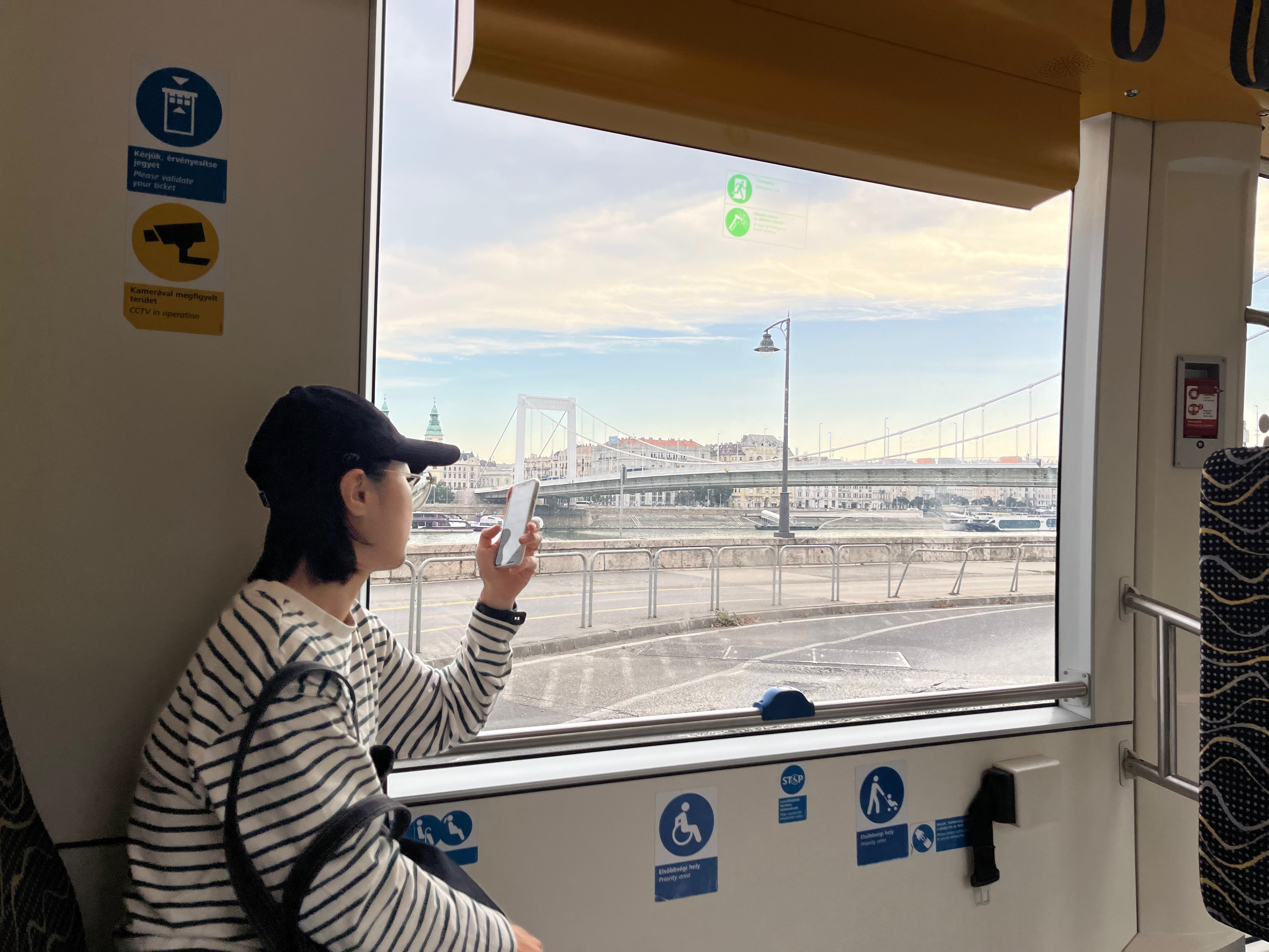 엘리제베트 다리를 건너서 트램을 타러 부랴부랴 갔다. 너무 멀리 가면 돌아오기 힘드니까 두 정거장 후에 하차했다. 어떻게 할까 고민하던 1분 사이에 반대편에서 들어오는 트램을 탔다. 그리곤 다리를 건너가는 길이 꽤 길어서 다리 넘어가는 버스를 빠르게 서치 해서 버스도 올라탔다. 그때 우리의 모습을 생각하면 지금도 너무 웃기다.