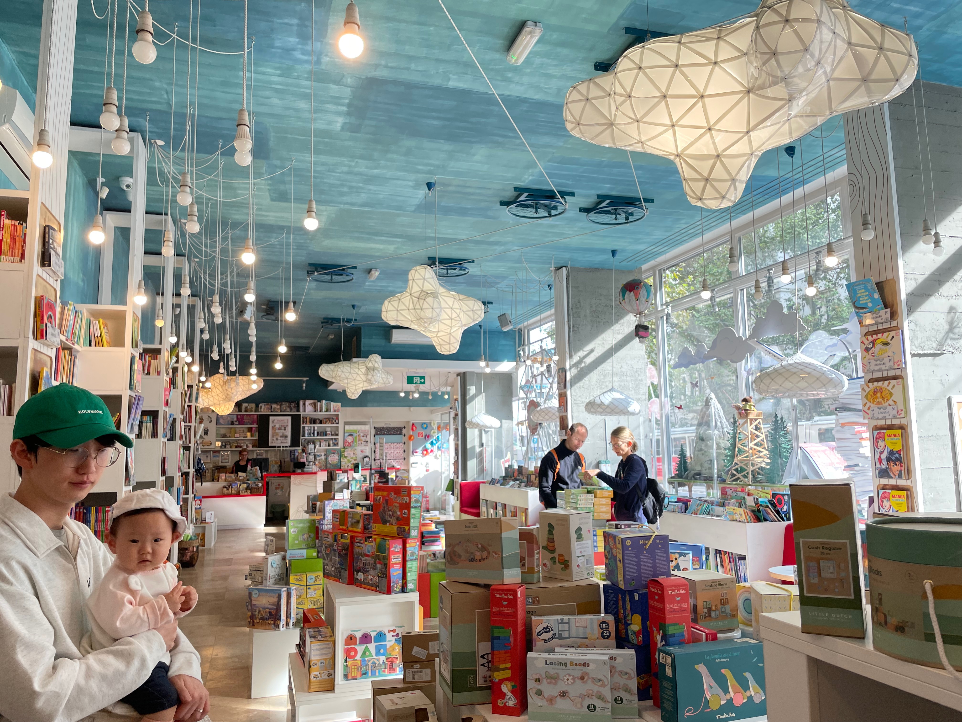 식사를 마치고 겔레르트쪽으로 가는 길에 아가 도서와 장난감을 파는 상점이 있어서 홀린 듯 들어갔다. 북유럽은 아니지만 북유럽 감성의 장난감들과 책이 있어서 아기 친구 선물과 아기 장난감을 고르느라 거의 1시간을 보냈던 것 같다.