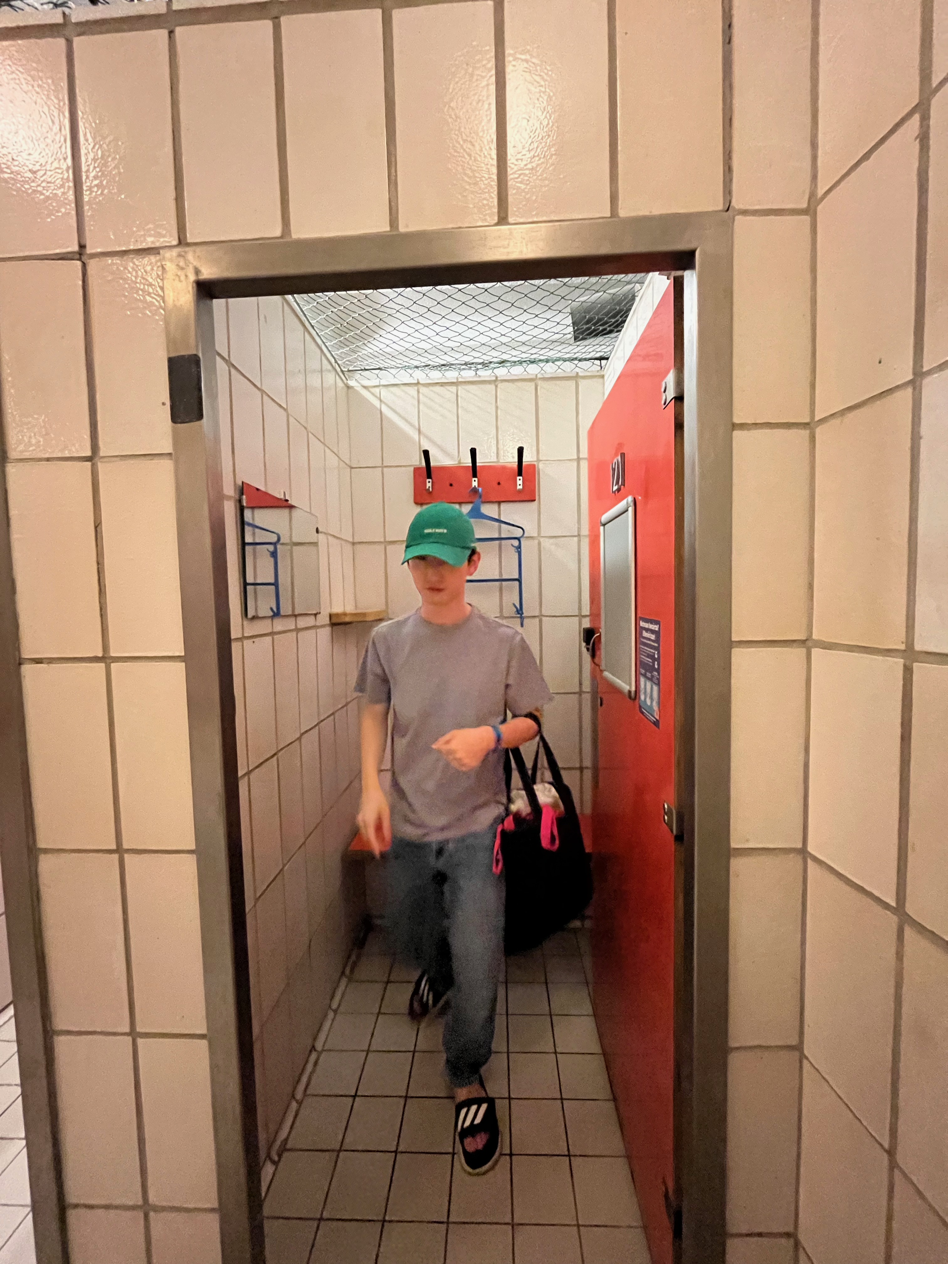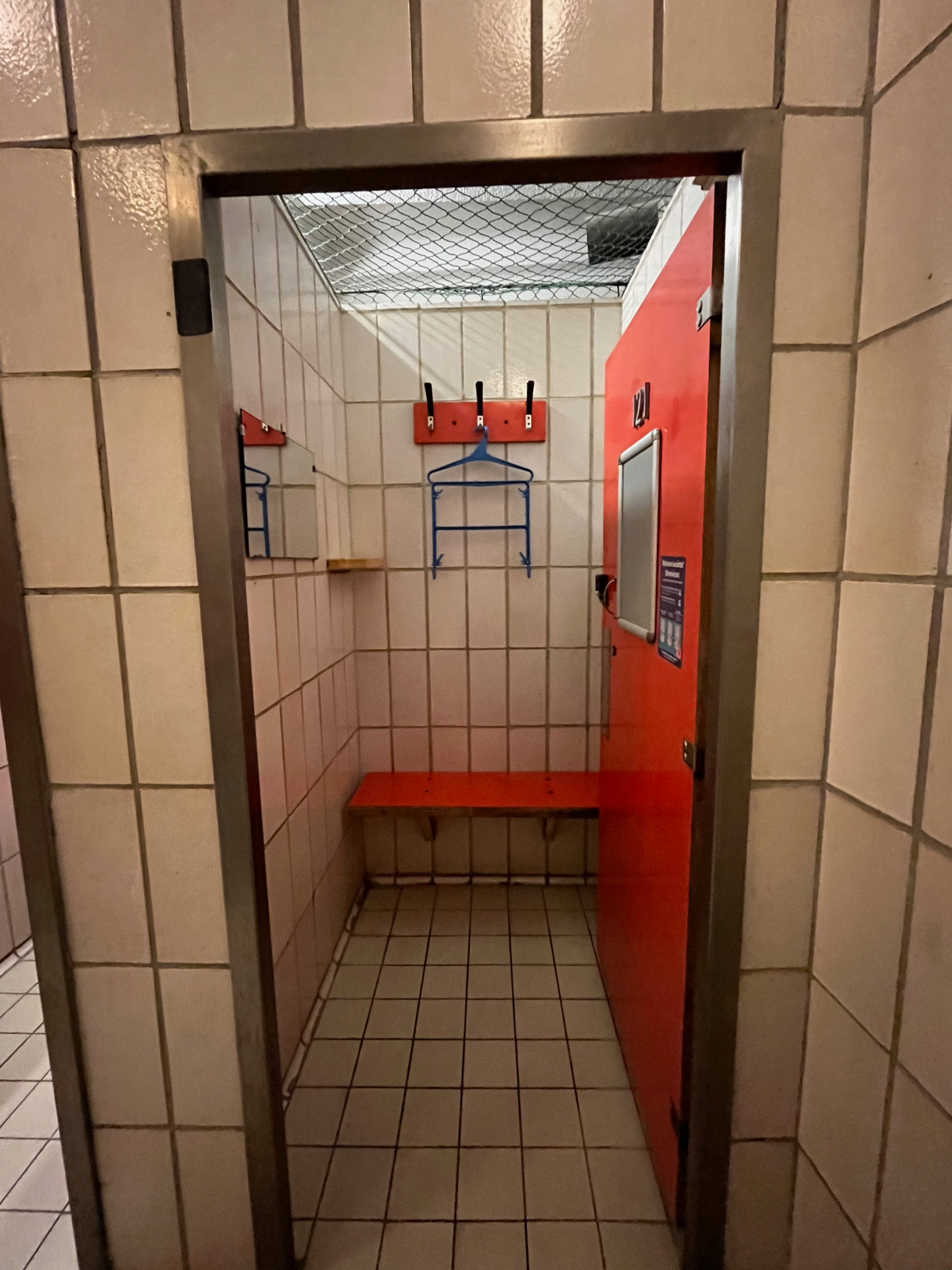 우리는 아기와 함께니 프라이빗 라커룸을 해서 좀 더 편하게 이용하기로 했다. 생각보다 비용차이도 많이 안 났는데 그만큼 공간이 굉장히 좁고 내 느낌엔 마치 수용소 같았다. 공기 순환을 위해서인지 아래 구멍도 뚫려있는 간단한 라커룸이었다.