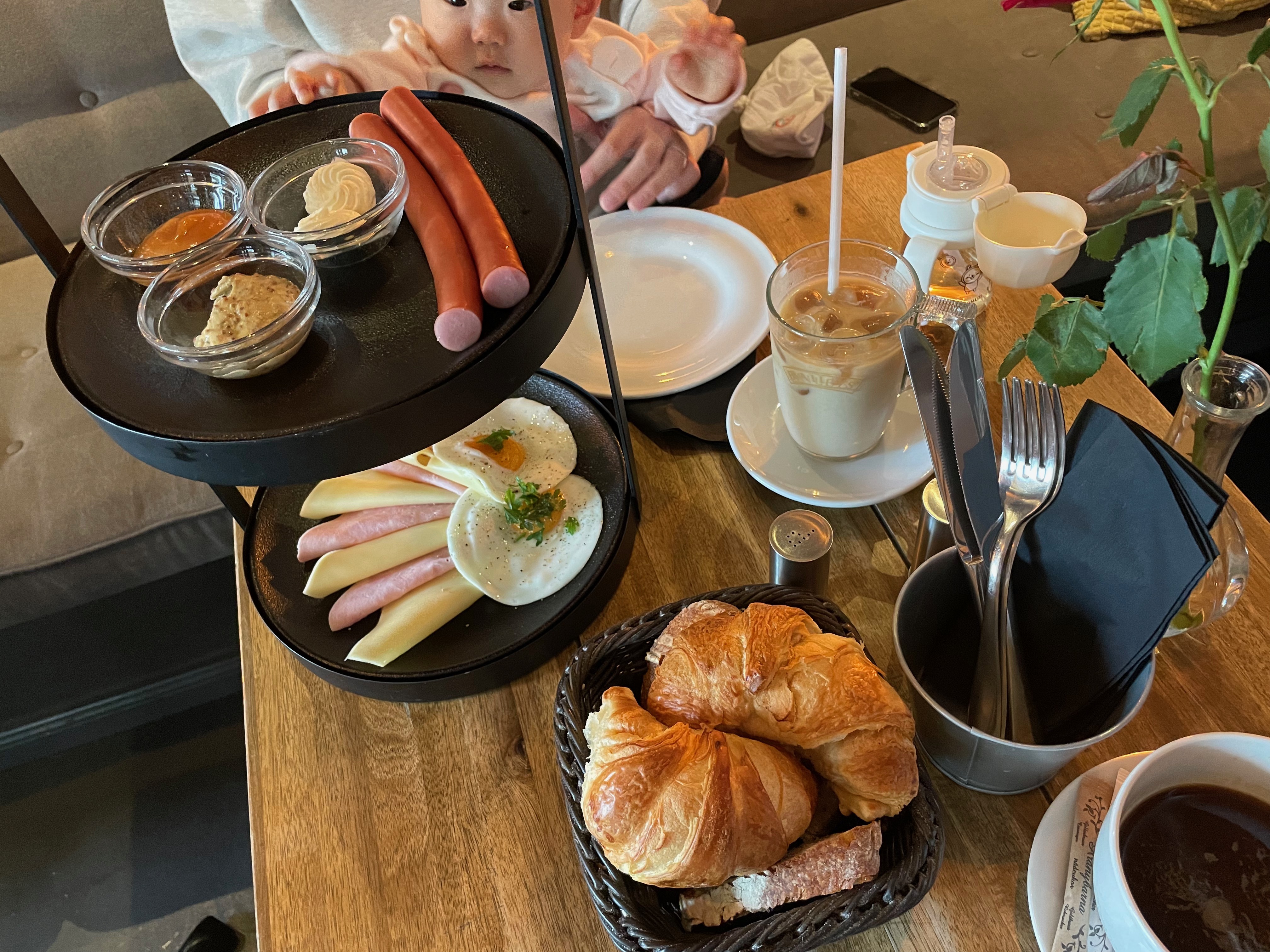 배도 고픈 상태니 근처 식당을 찾기 위해 지도를 켰더니 마침 우리가 가기로 했던 겔레르트 온천 근처였던 것이다. 안 그래도 아기 입장이 가능한지 문의하러 들르려고 했는데 잘됐다 싶어서 더더욱 그 근처에서 밥을 먹기로 했다. 거의 오픈시간대라 사람도 많이 없어 여유 있게 식사를 할 수 있었다. 우리가 생각한 든든한 식사는 아니었지만 분위기 내며 먹기에 괜찮은 아침이었다. 더듬더듬 헝가리어로 주문을 하고 추석당일이라 가족들이 모여있다고 해서 영상통화도 했다.