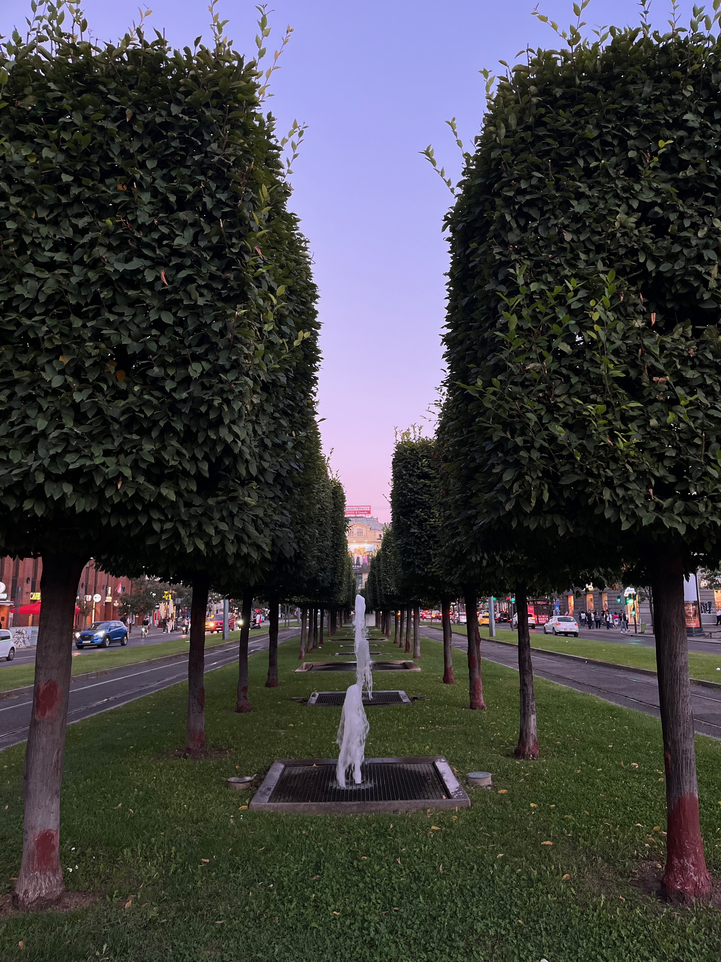 나무를 어쩜 저렇게 네모 반듯하게 깎아두었는지 마치 아이스크림 같다. PD님이 열심히 사진 찍은 걸 보니 라벤더빛 하늘과 함께 멋진 가로수길 사진이었다.