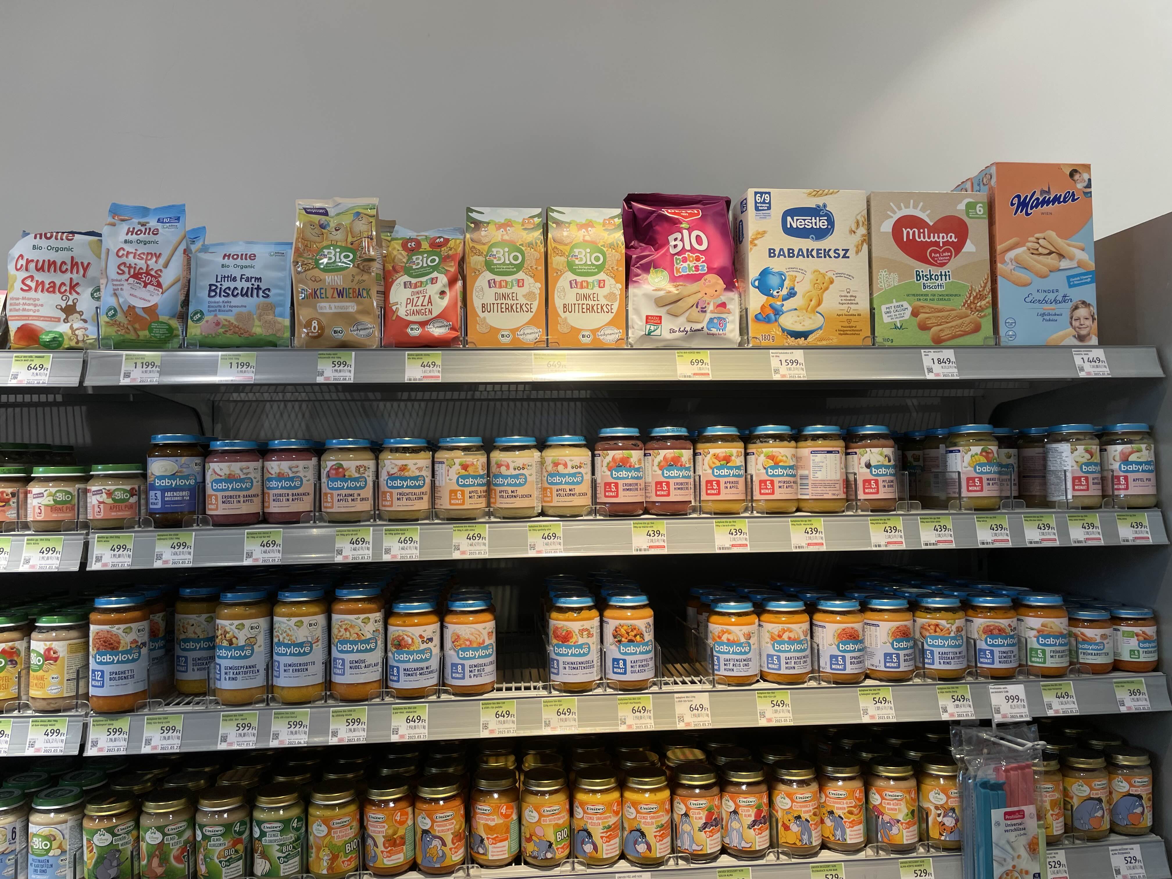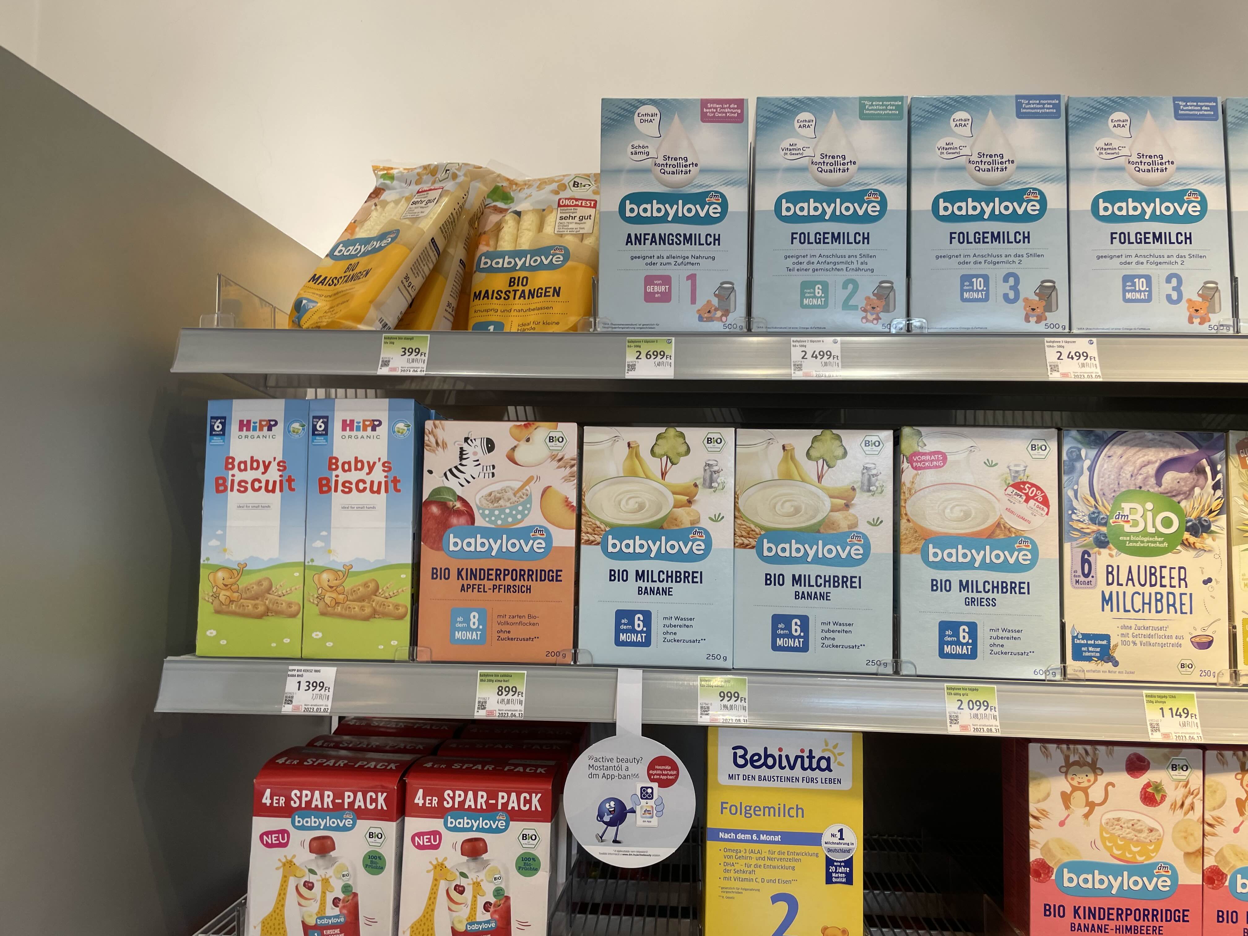 아기옷 쇼핑을 마치고 숙소로 다시 돌아가는 길에 내 발길을 사로잡았던 dm. 한국의 올리브영 같은 느낌이다. 구경할 겸 들렀는데 웬걸? 아기 이유식과 간식이 마트보다 더더욱 다양하게 있는 것이었다. 그래서 맛있어 보이는 것으로 몇 가지 구매했다.