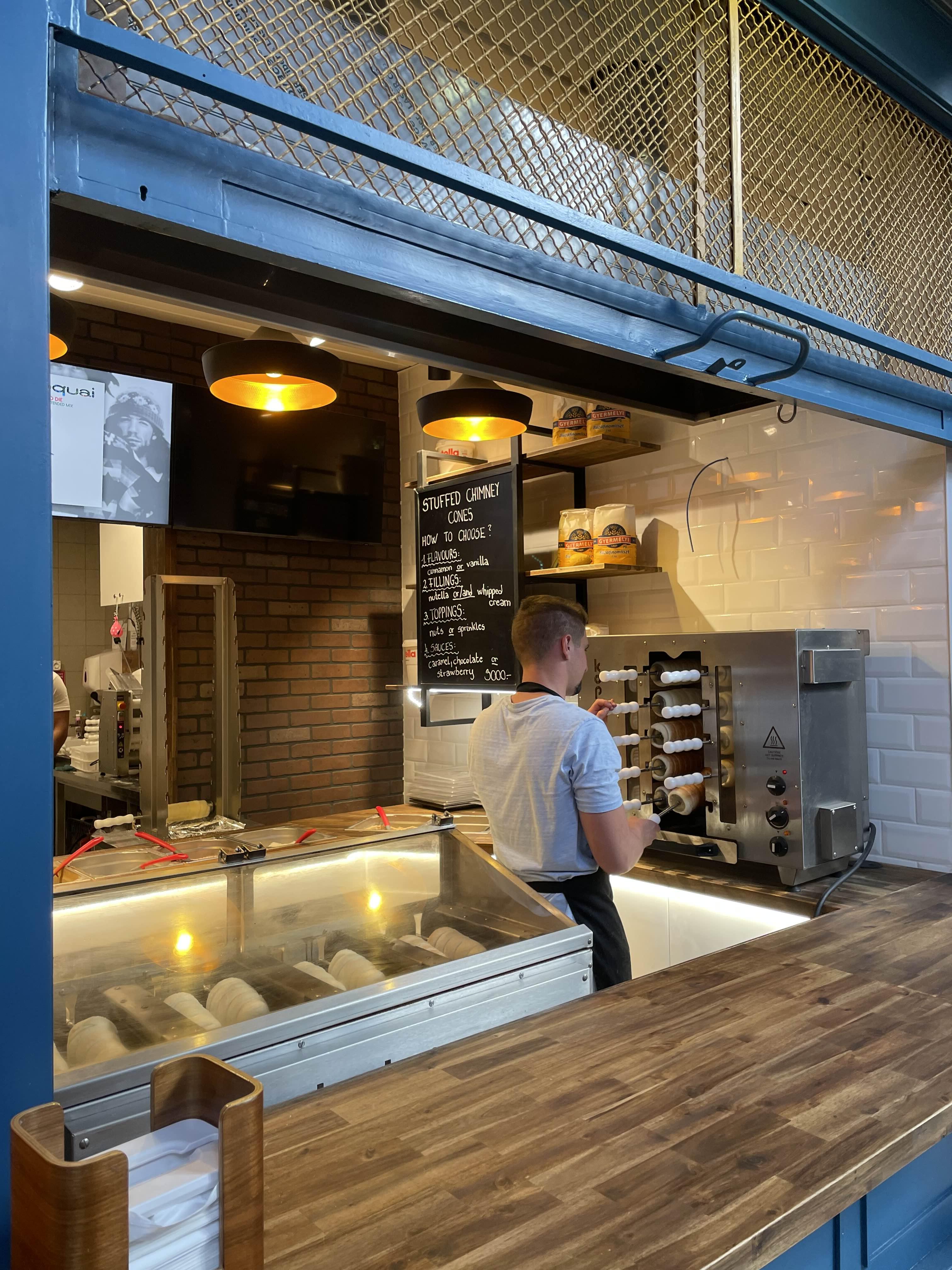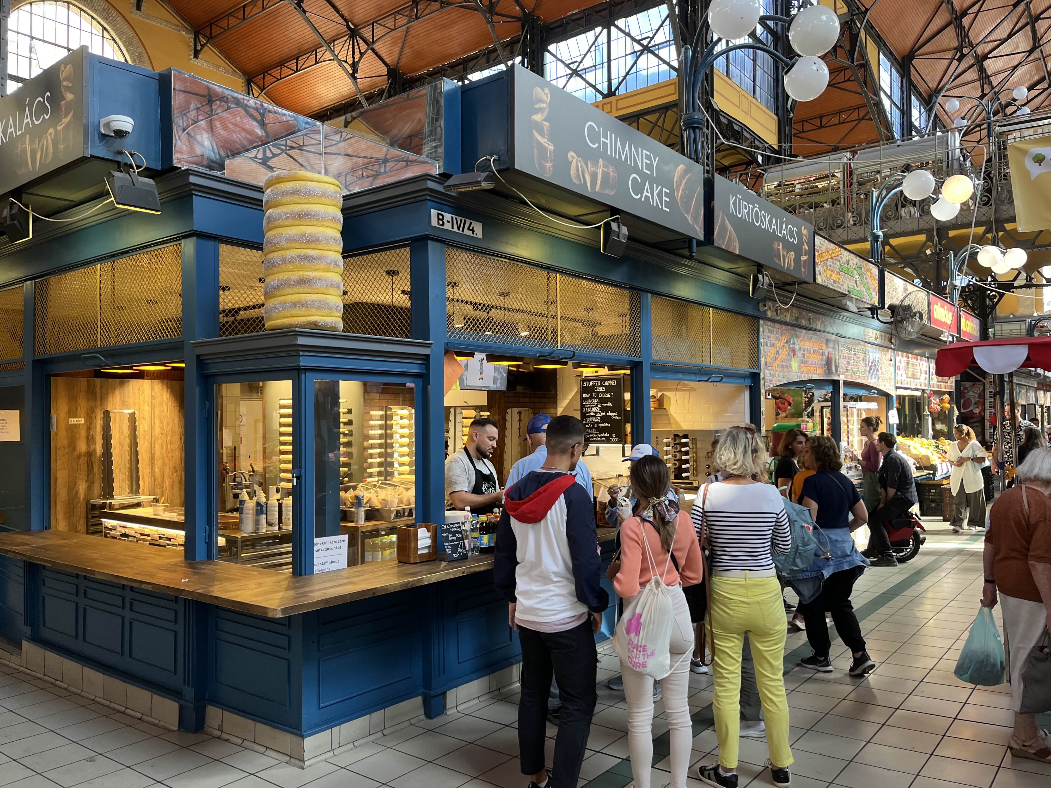 헝가리에 오기 2일 전 제주도 여행 때 굴뚝빵 아이스크림을 사 먹었었는데 알고 보니 헝가리가 굴뚝빵 원조라고 했다. 신기해하면서 언젠가 사 먹어야지 생각했는데 시장 안에 크게 있길래 한번 사 먹어보기로 했다.