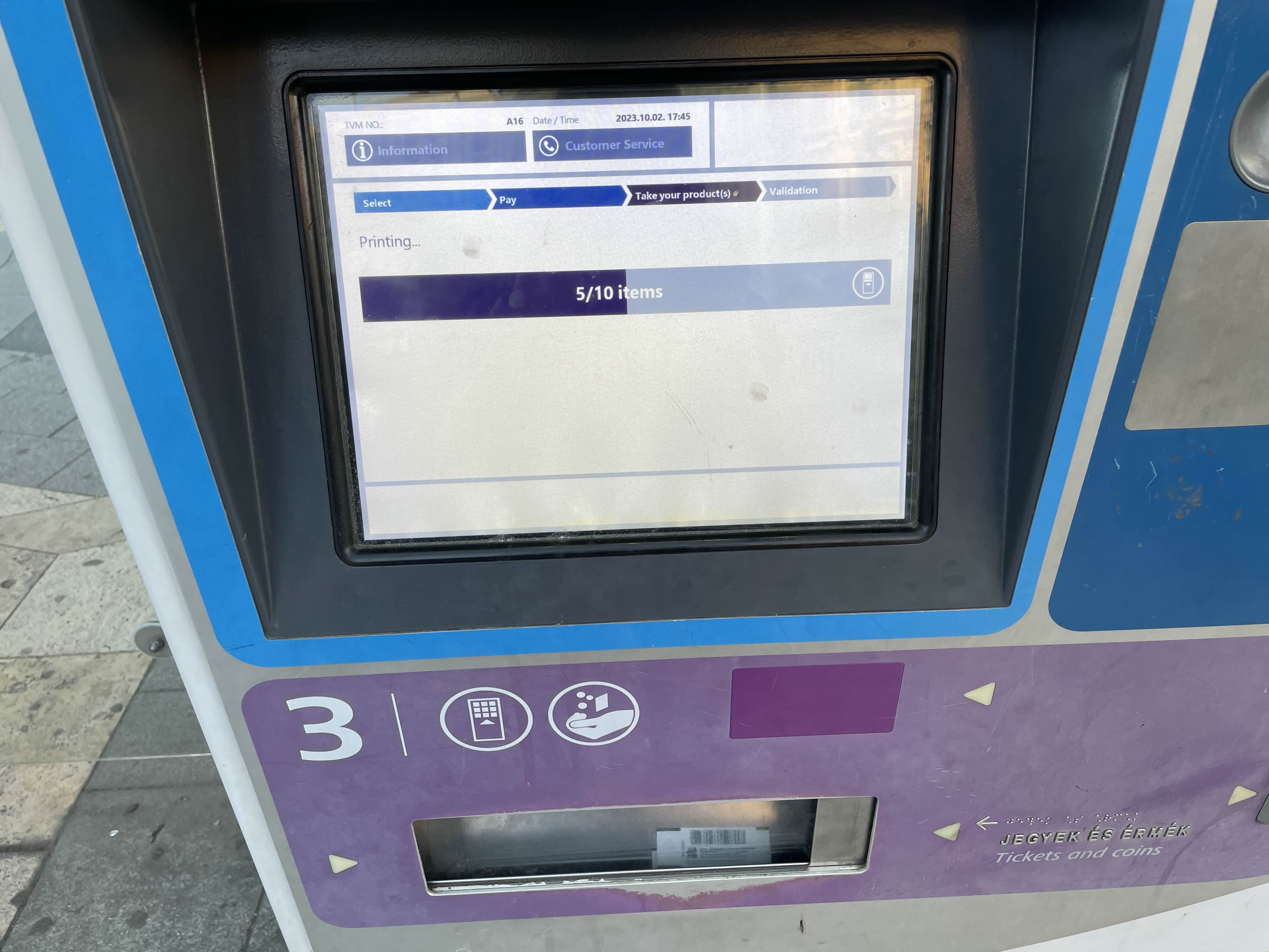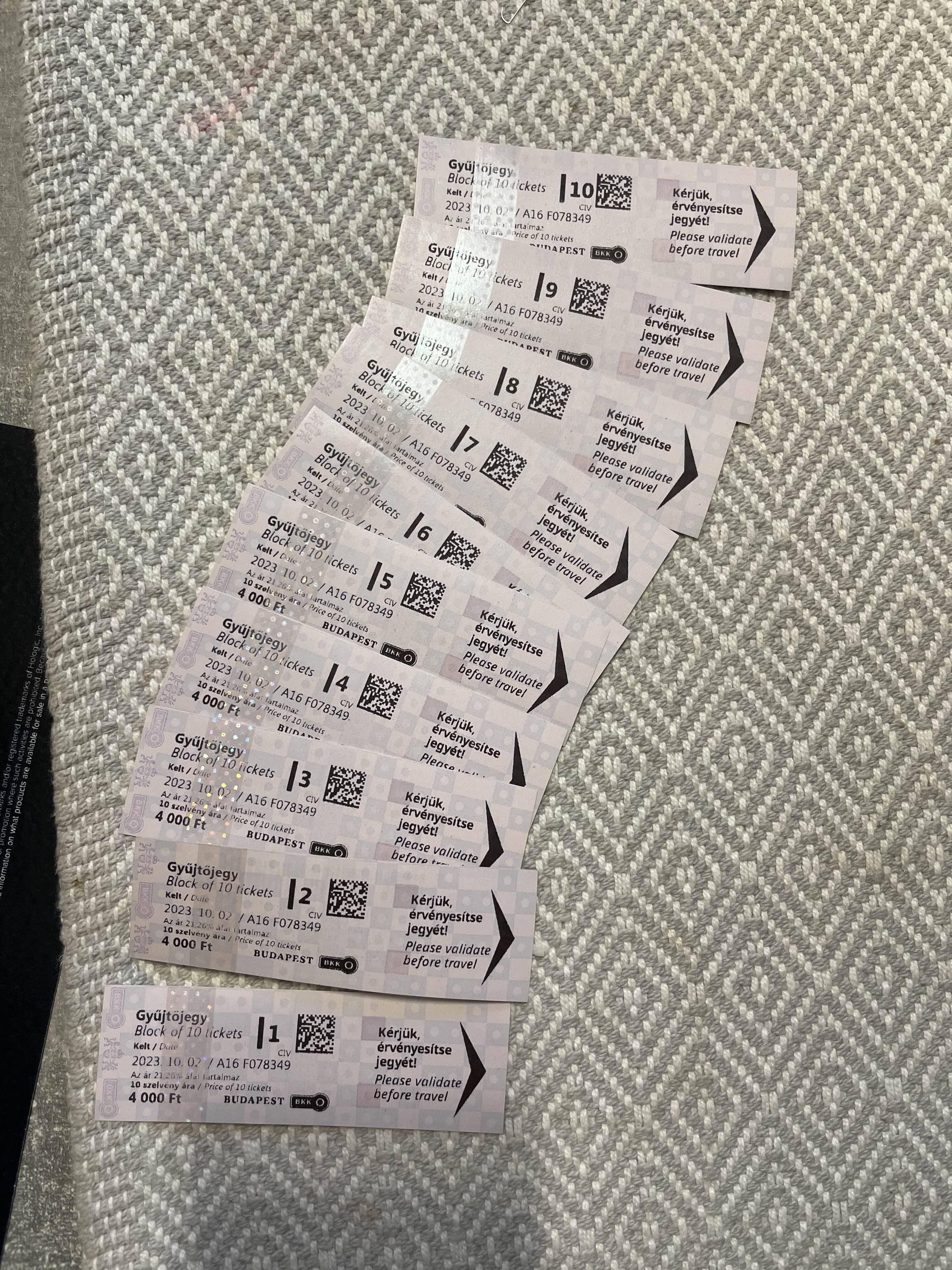 그동안 그때그때 일정에 맞춰서 24시간 교통권으로 구매했었는데, 남은 여행동안 교통권 쓸 것을 대략 계산해 보니 1회짜리 10장으로 구매하는 게 적합했다. 매번 남편이 교통권을 구매하다가 이번에는 내가 구매해 보았는데 invoice를 발급받는 것으로 하니 다음으로 계속 안 넘어가서 invoice 발급 안 함으로 하고 구매를 했다. 그리고 나니 얇은 티켓이 쭈욱 나왔다.