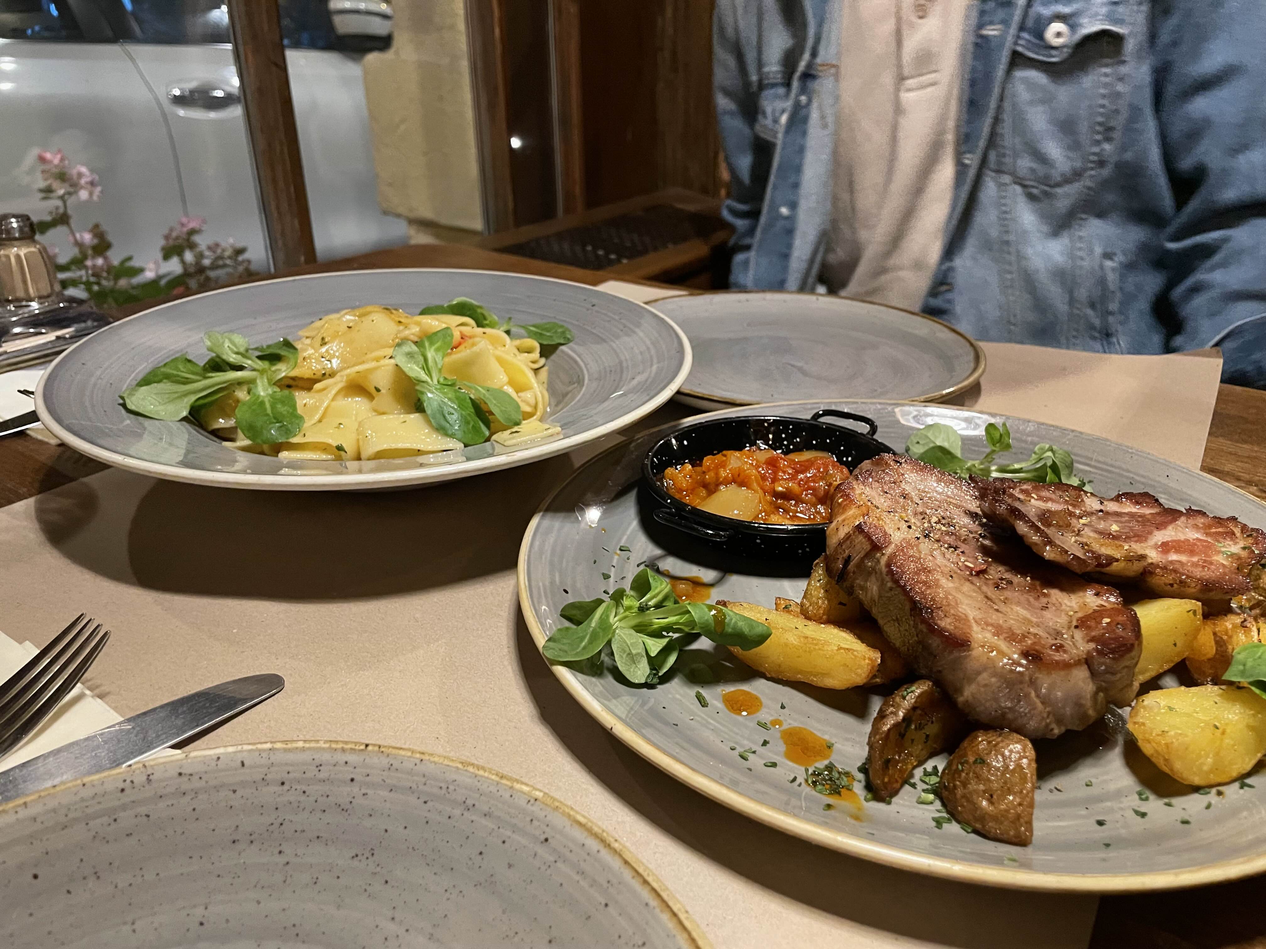 망가리차 스테이크는 역시나 부드럽고 맛있었고 남편이 시킨 파파델레는 알리오올리오와 계란 노른자 까르보나라 같은 맛이었다. 둘 다 아무래도 느끼한 종류다 보니 남편이 갑자기 외국여행 때 한 번도 음식이 물린다는 생각을 해본 적 없었는데, 이번에는 계속 고기류를 먹어서 그런지 뭔가 개운한 걸 먹고 싶다고 했다.