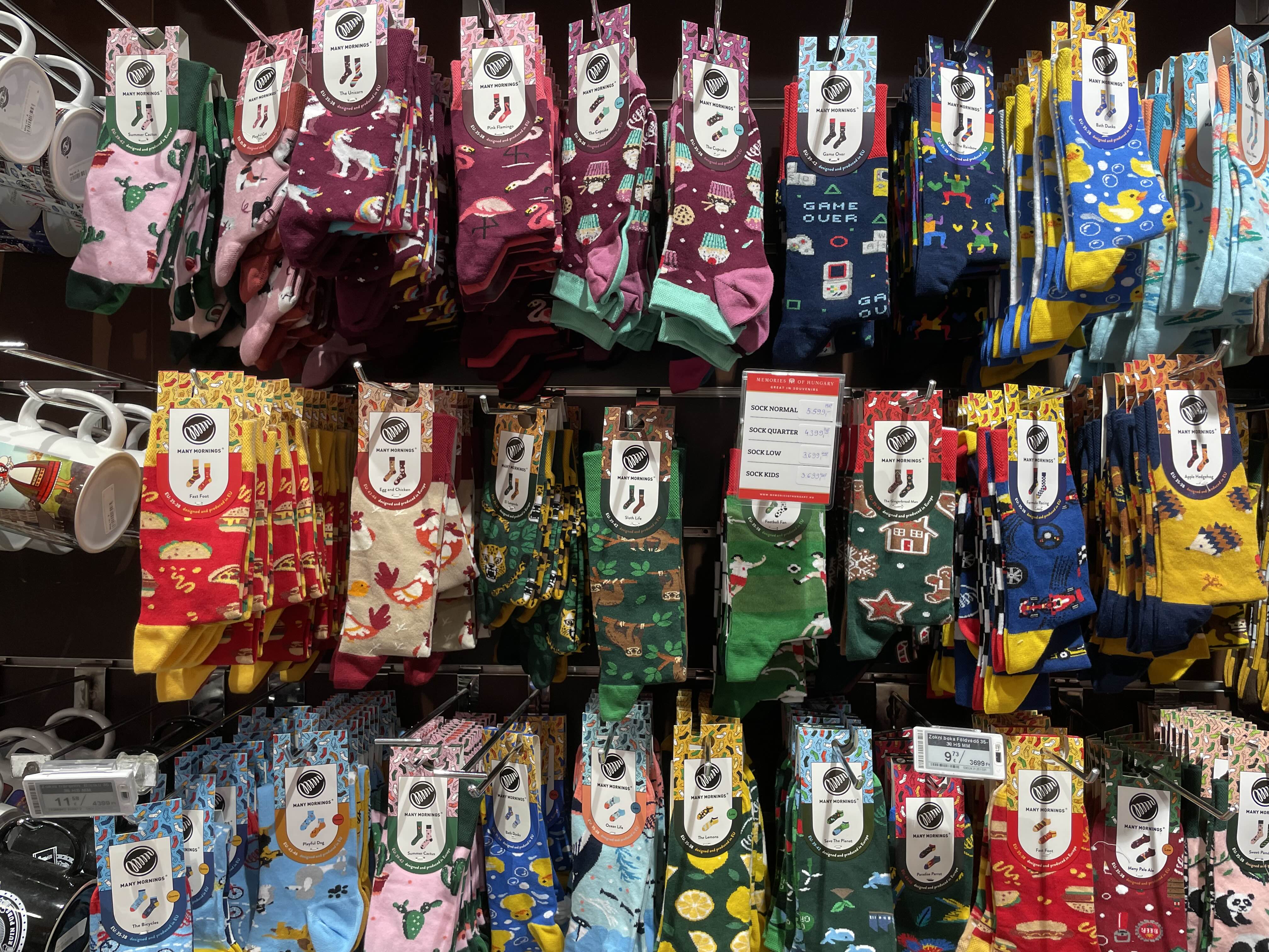 아기가 자는 동안 남편에게 맡기고 잠시 혼자 콧바람을 쐬러 동네 구경을 하는데 매번 지나갈 때마다 들르고 싶었던 기념품샵에 들어갔다. 곧 부다페스트 여행이 끝나가는데 뭐라도 살 만한 것들이 있나 한번 둘러보았다. 실용적이고 유용한 물건들은 딱히 없었고 양말이 화려하고 귀엽긴 했는데 막상 구매하자니 잘 신을까 망설여졌다.