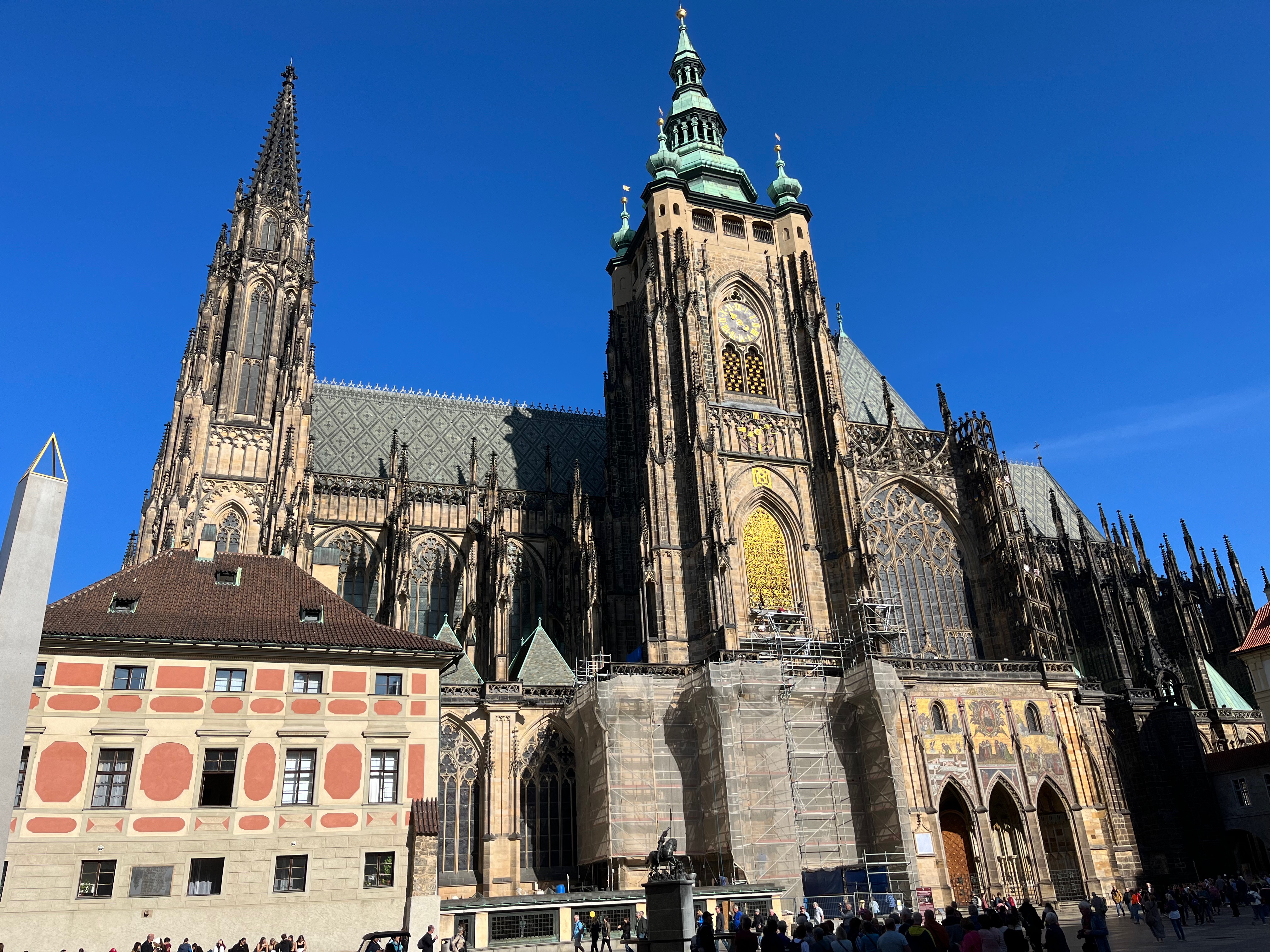 2011년 테러 사건 이후에 보안이 강화됨에 따라 프라하성에 입장하려면 보안 검색을 철저히 진행했다고 한다. 그래서 그때는 입장하는 것만 3시간이 걸릴 정도라고 했다. 지금은 대통령이 즉위하면서 관광객들의 편의를 위해 보안검색을 쿨하게 없애버렸고 덕분에 우리는 대기 없이 편하게 들어갈 수 있었다. 만약에 그렇게 기다려야 했다면 아마 우린 프라하성에 못 갔을 수도 있겠다 싶었다. 아기와 길바닥에서 3시간 대기? 생각만 해도 그날 여행 다 했다. ㅎㅎ