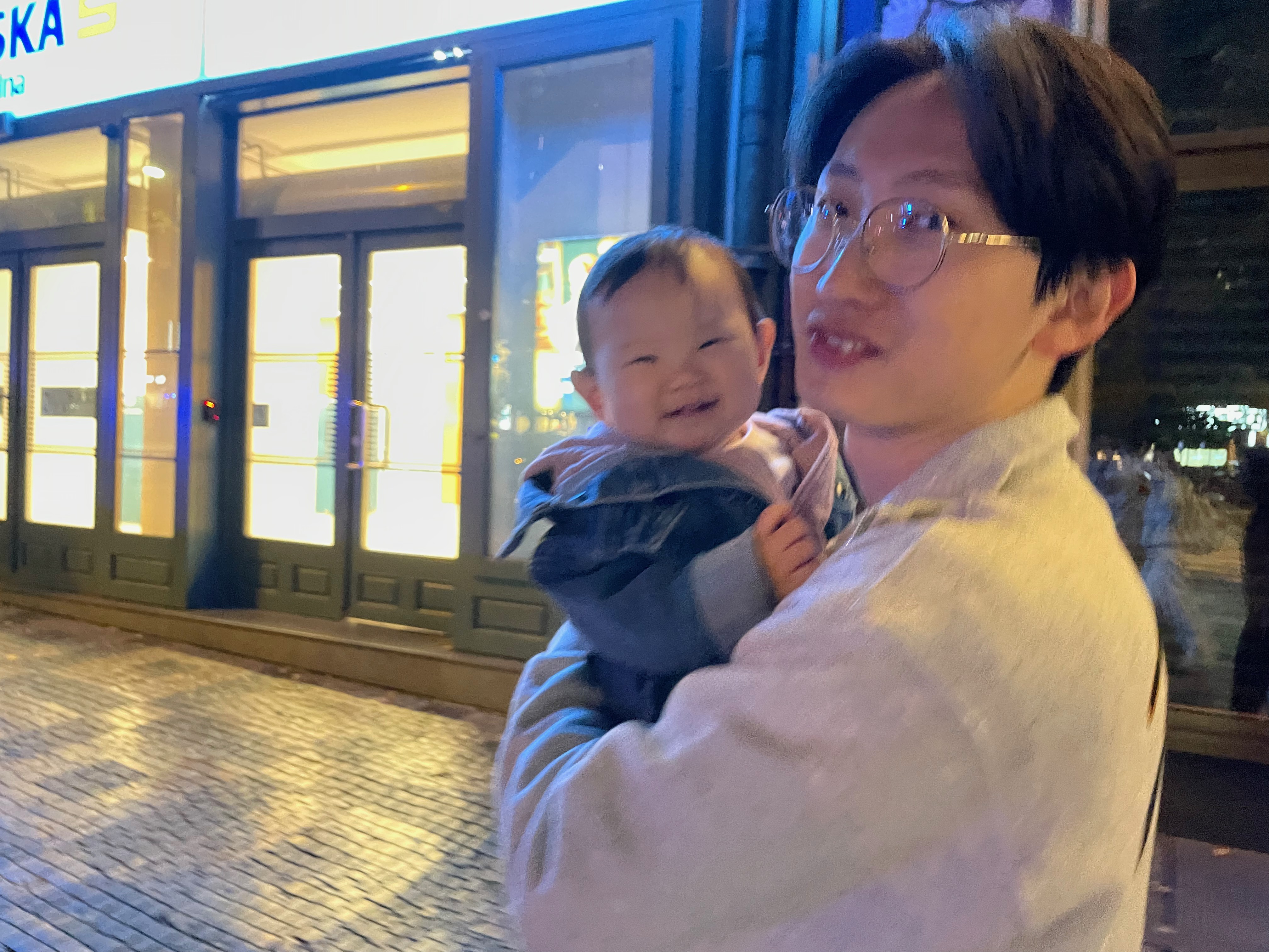 우리는 집에서 한창 쉬다가 야경을 보러 나왔다. 헝가리에서 이미 단련된 시차 덕에 체코에서는 야경볼 시간에 잘 깨어있는 우리 아기.