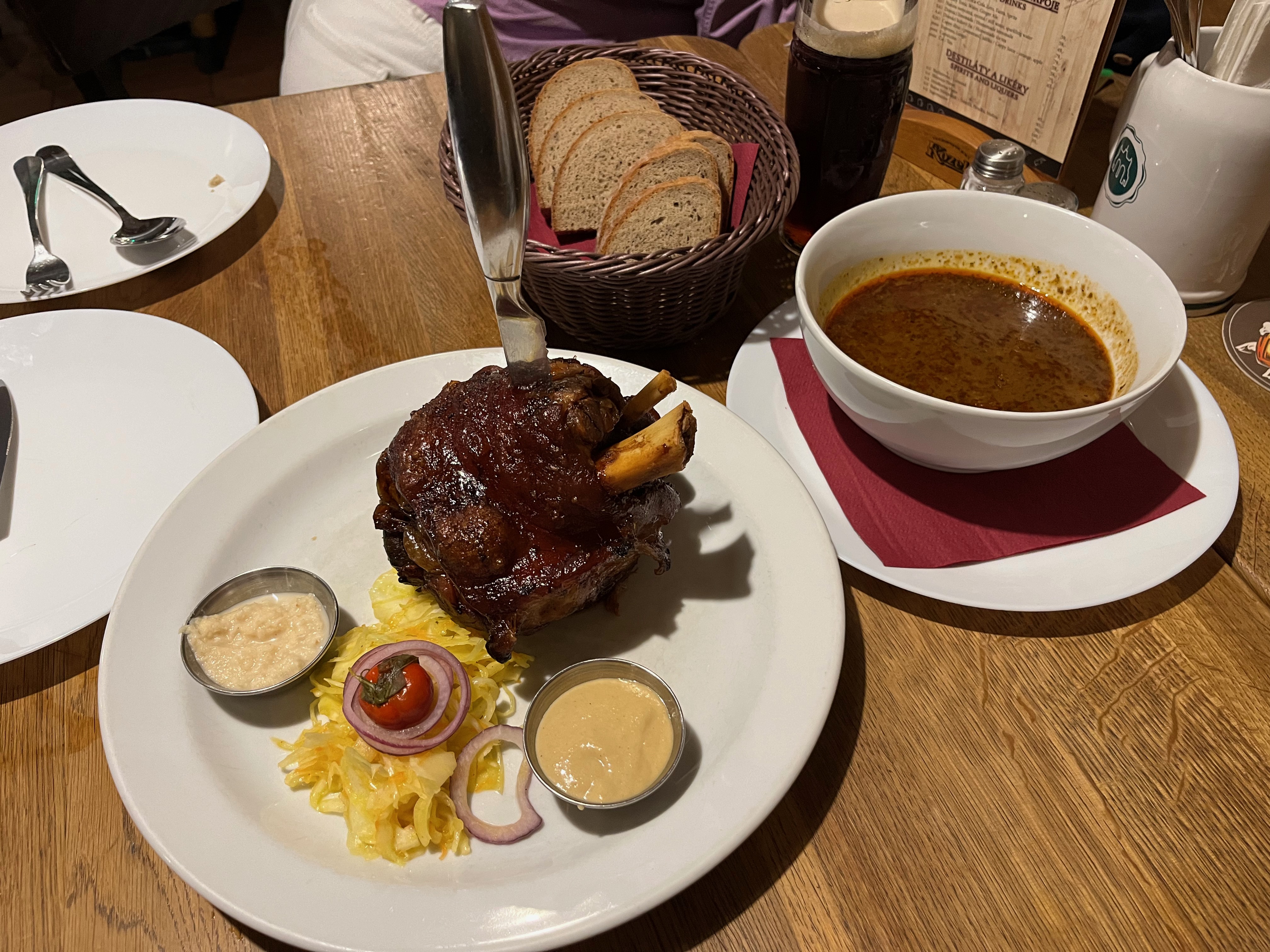 메인디쉬로 체코식 족발인 꼴레뇨와 굴라쉬를 시켰다. 꼴레뇨는 겉바속촉이었고 무엇보다도 양이 너무너무 많았다. 나는 아기를 돌보느라 먹을 정신이 없었을뿐더러 코젤다크 하나만으로 충분했기에 대부분의 꼴레뇨는 남편이 다 먹었다.