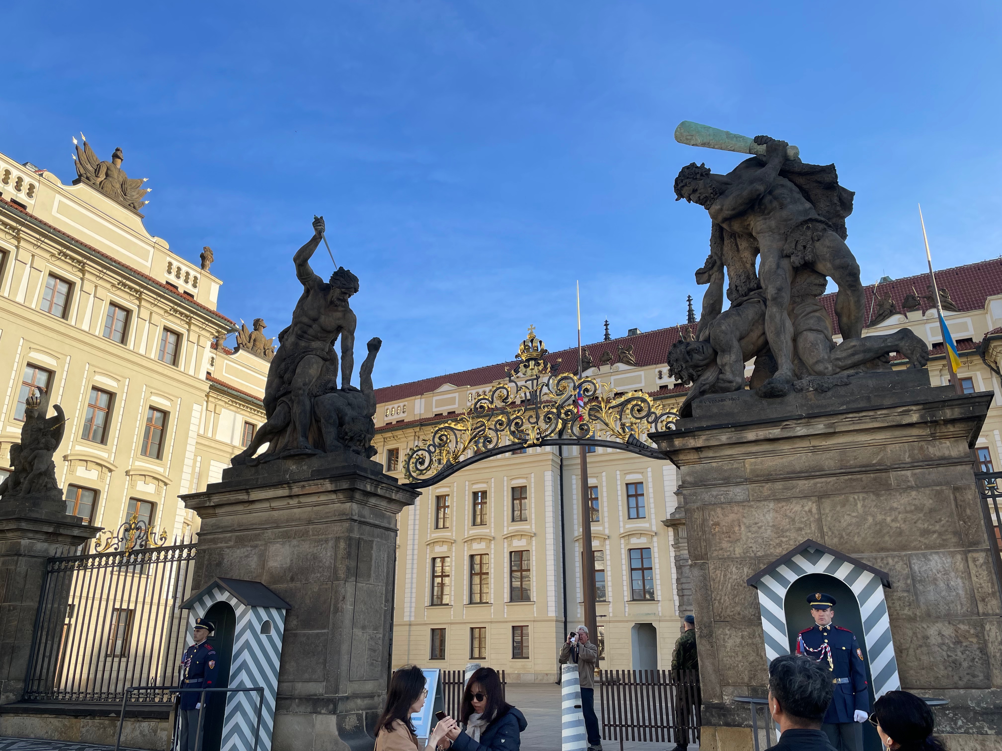 대통령궁 앞 입구에는 조각상이 무시무시하게 있었는데 처음 봤을 때 나는 당연히 위에서 위협하고 있는 사람은 체코인이고 아래는 그 외 세력인 줄 알았다. 하지만 위협을 가하는 사람은 오스만-헝가리제국의 군대고 그 밑이 체코인들이라고 했다. 왜지? 왜 이런 동상을 부수지 않고 그대로 둔 걸까? 의문이었는데 그때를 기억하고자 함이라고 했다. 그래도 이제는 독립적인 국가로서 바로 선 체코를 상징하는 동상도 옆에 만들어 두긴 했다고 한다.