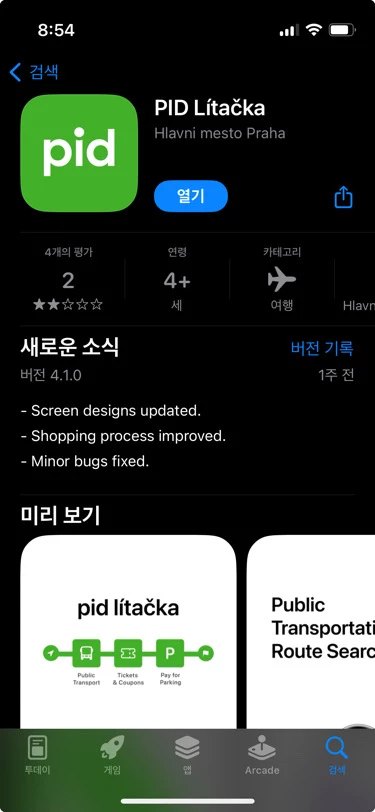 투어 내용 중에 대중교통을 이용하는 코스가 있었기 때문에 교통권이 필요했고 우리는 남편이 미리 찾아본 프라하 교통권 어플을 다운로드하여 준비해 두었다. 어플은 남편과 나 각각 다운받아 교통권 구매 후 사용했다.