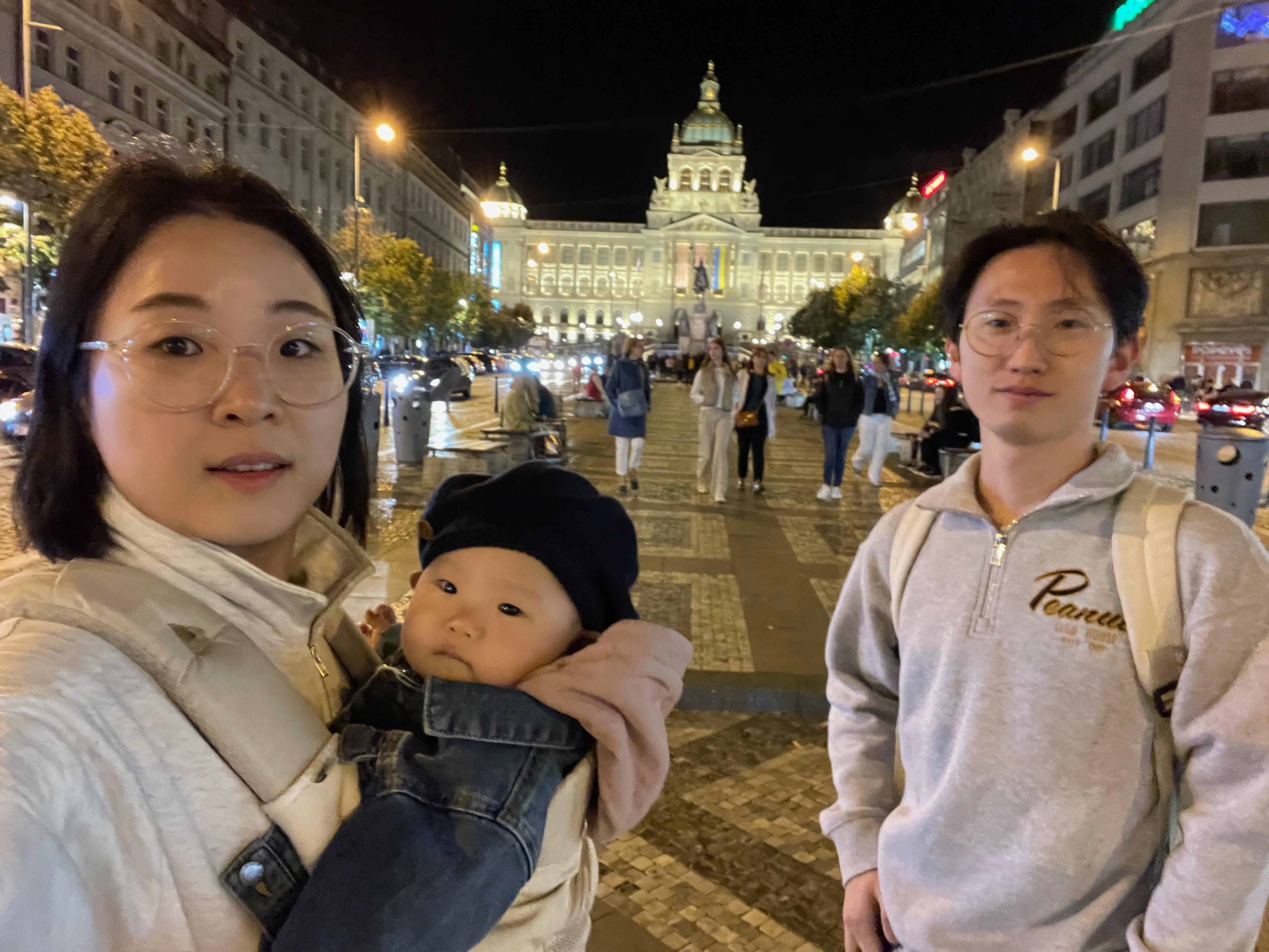 우리는 집에서 한창 쉬다가 야경을 보러 나왔다. 헝가리에서 이미 단련된 시차 덕에 체코에서는 야경볼 시간에 잘 깨어있는 우리 아기.