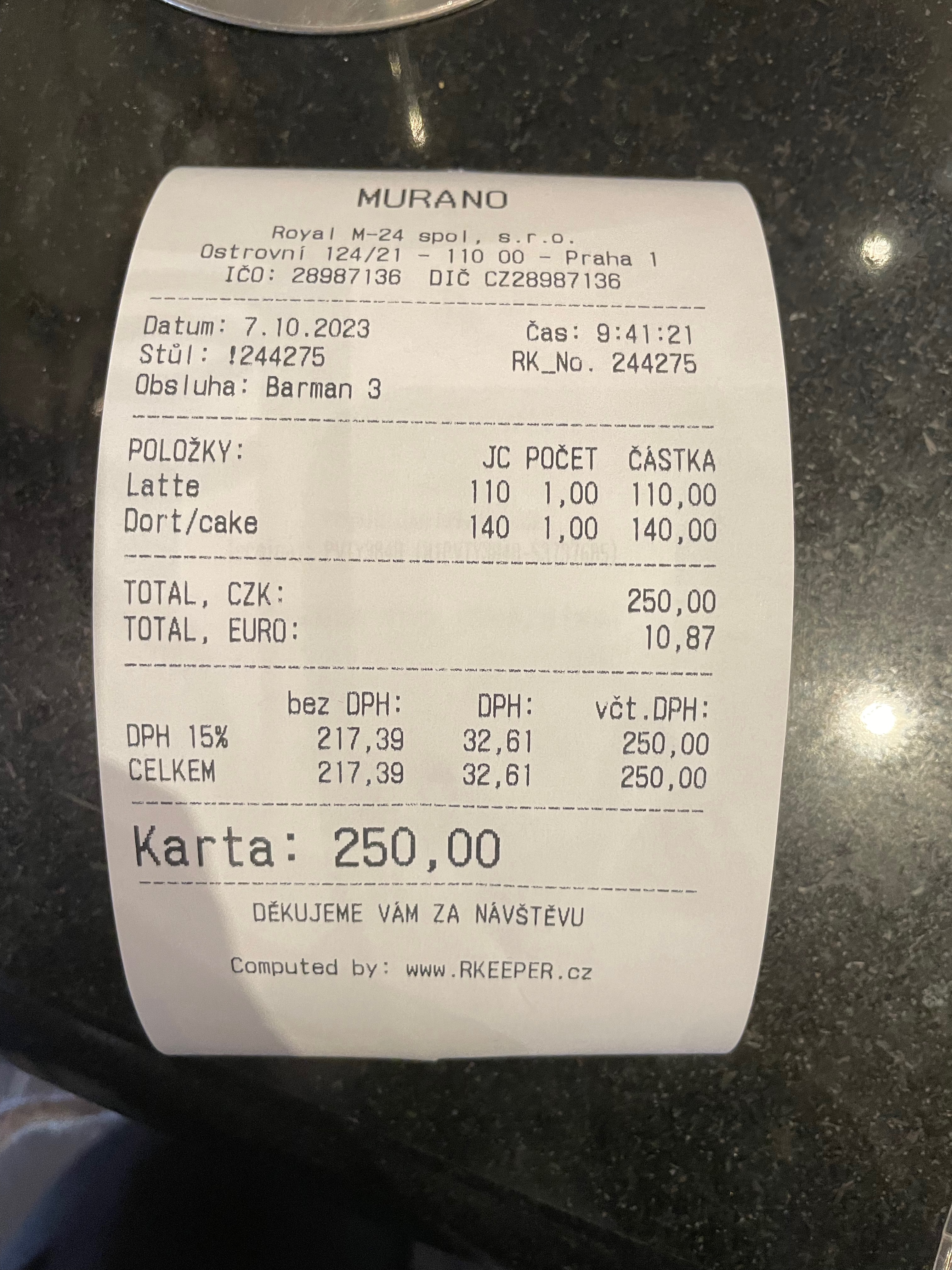 음식값은 다해서 720kc(한화 약 41,200원가량) + 서비스 팁 별도로 5%? 10%? 줬던 것 같다. 자기가 선택해서 팁을 낼 수 있어서 서비스는 매우 만족했지만, 너무 과하게 줄 순 없으므로... ㅎㅎ 가난한 여행객 죄송합니다.