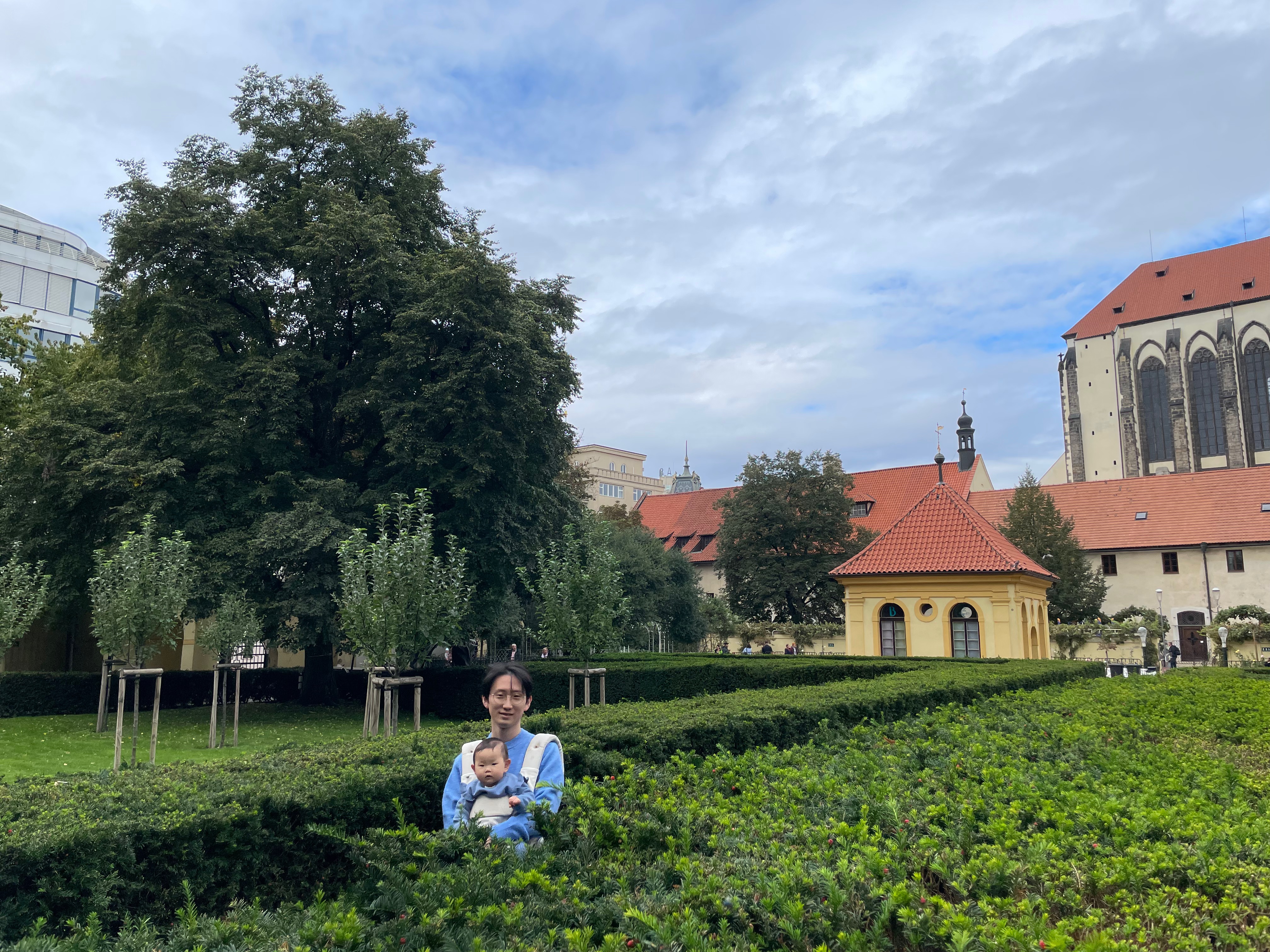 우리는 아점을 먹기 위해 호스트가 추천해 준 몇몇 식당 중에 한 곳을 골라서 가기로 했다. 가는 길에 작은 정원 같은 곳이 미로가 있었다. 이런 곳만 보면 사진은 못 참지!! 남편과 아기만 찰칵찰칵 해주었다.