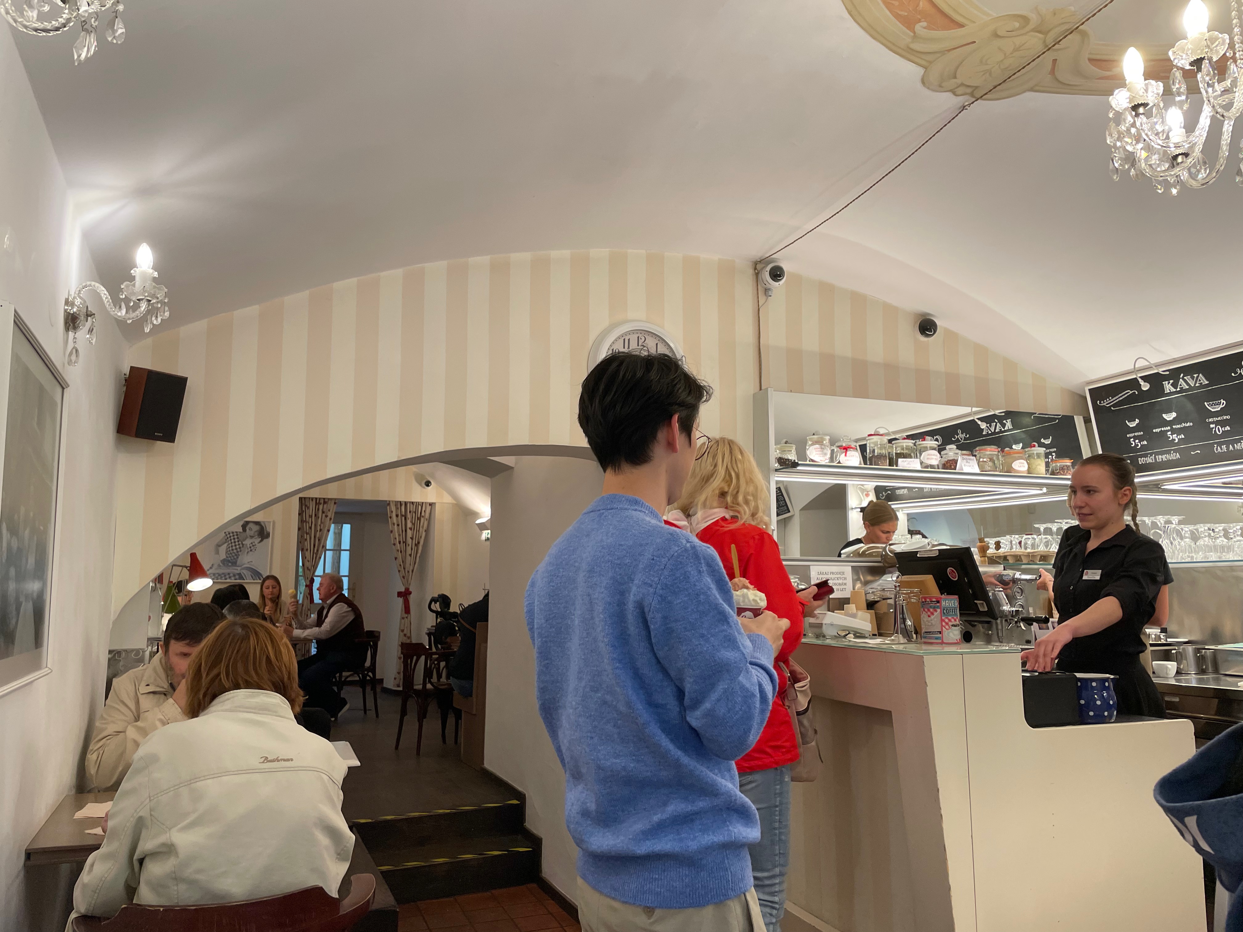 가이드님이 추천해 주셨던 디저트 카페에 역시 추천해 주셨던 '말렌카'를 맛보러 들어갔다. 시루떡같이 생긴 케이크라서 한눈에 알아볼 수 있을 거라고 했고 '말렌카'라고 알려주셨기에 주문할 때 '말렌카' 달라고 했더니 못 알아듣더라.